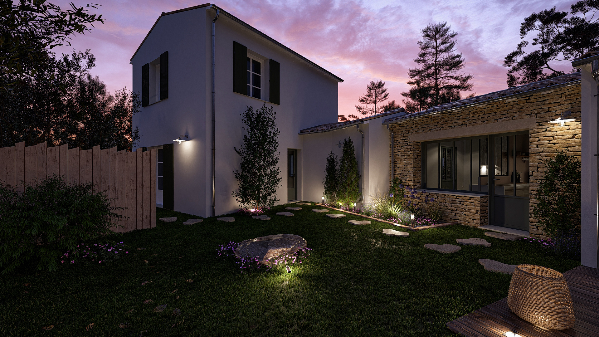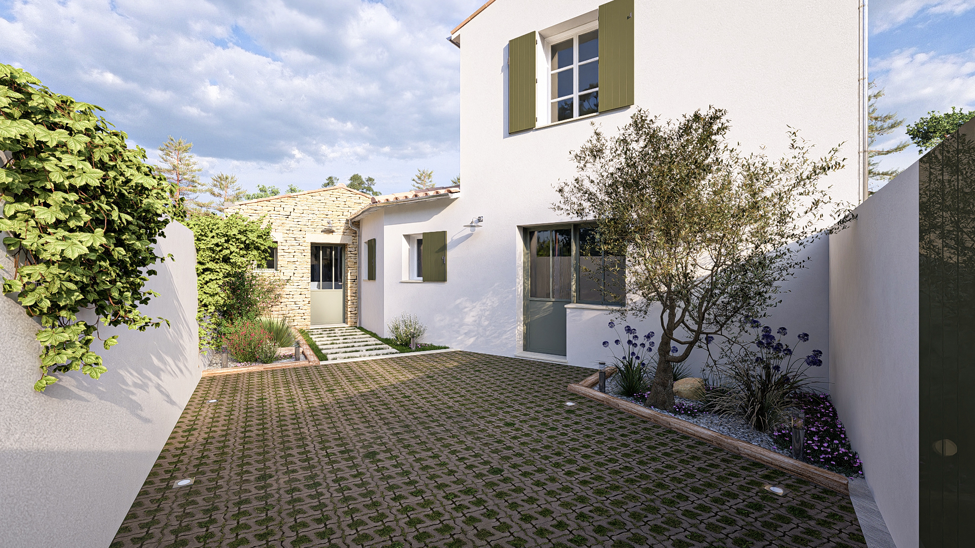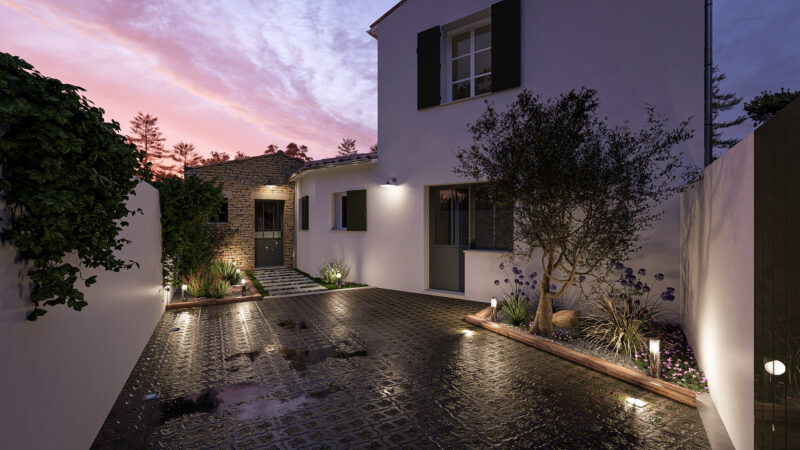Imaginée pour allier sobriété et authenticité, la genèse du projet reposait sur la création d’une maison au volume simple côté rue, mais dotée d’une forte personnalité côté jardin, abrité de tout regard. Le résultat est une réussite : une architecture en parfaite harmonie avec le style rétais contemporain.