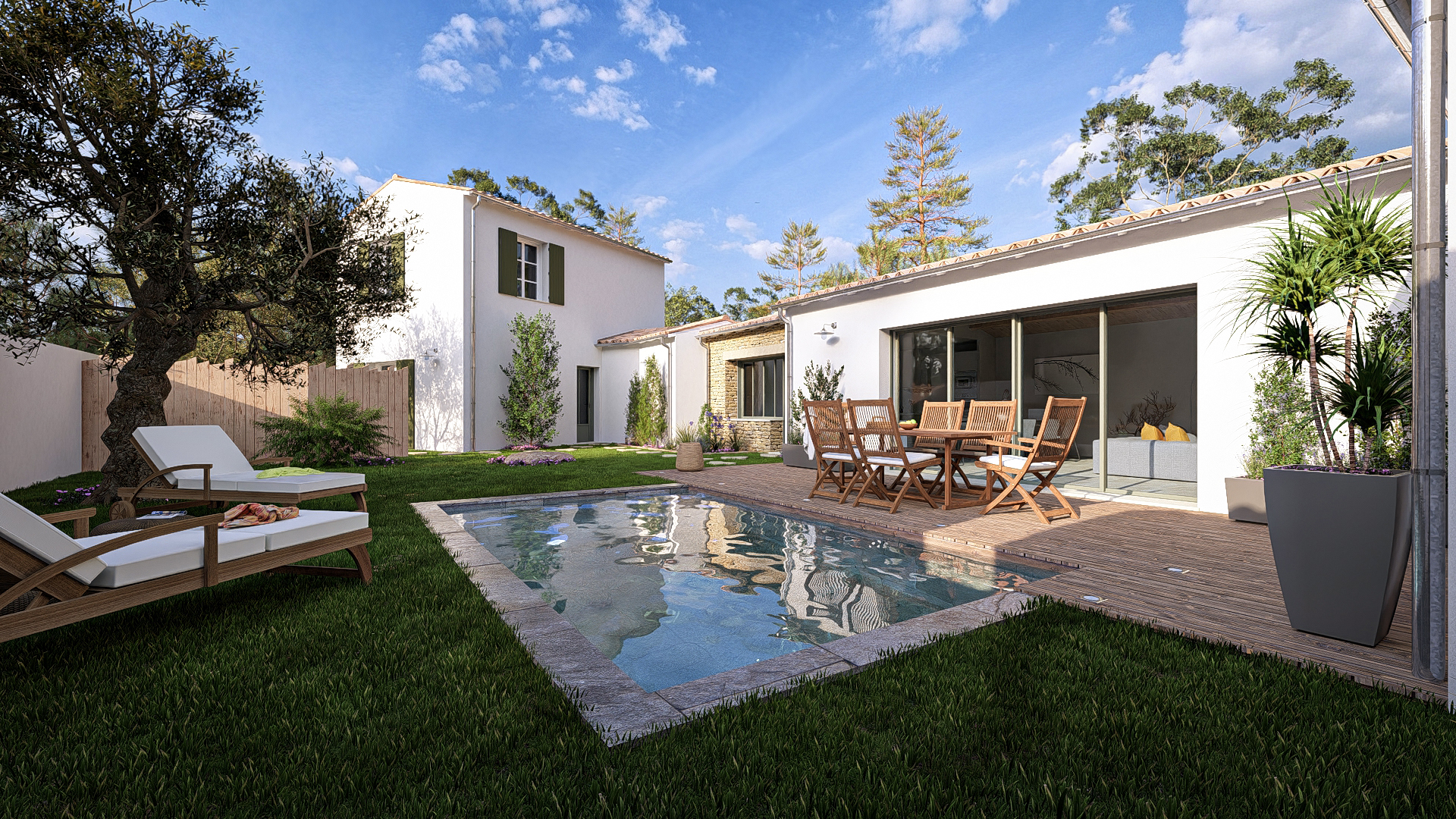 Imaginée pour allier sobriété et authenticité, la genèse du projet reposait sur la création d’une maison au volume simple côté rue, mais dotée d’une forte personnalité côté jardin, abrité de tout regard. Le résultat est une réussite : une architecture en parfaite harmonie avec le style rétais contemporain.